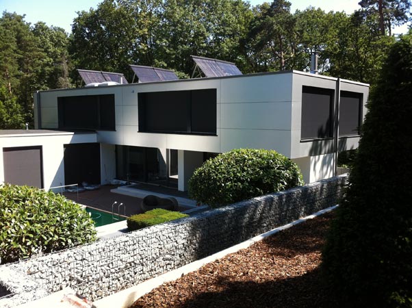 Senkrechte Profile lassen die Fassade größer (höher) erscheinen. Vorteil hier ist, dass der Regen schneller abfließt.